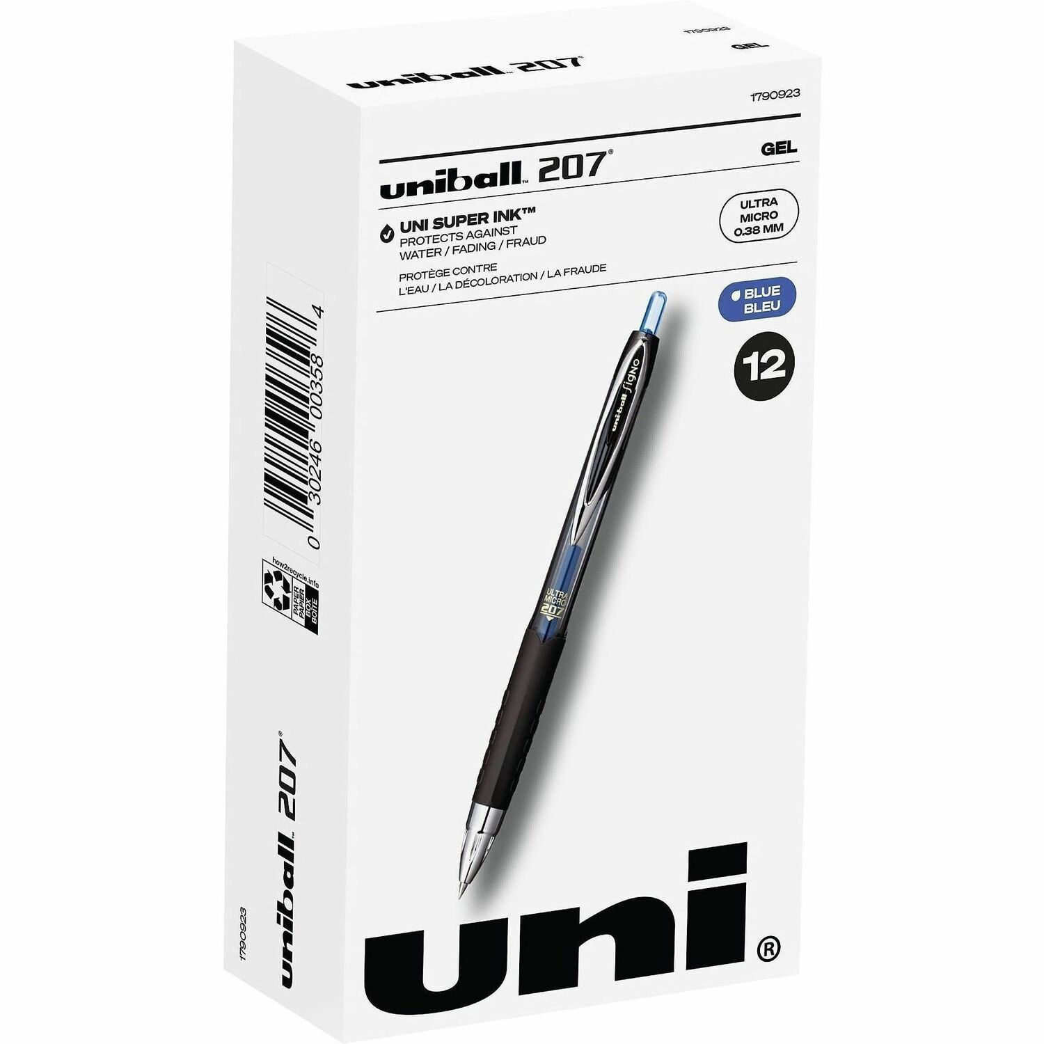 Stock your office, home or classroom with 207 Retractable Gel Pens. Stainless steel tip resists bending and breaking. Even-flowing, pigment-based gel ink delivers a smooth writing experience for intense, vibrant lines, ensuring every mark is communicated. Use retractable pens for everyday writing tasks and important signatures, trusting quick-drying Super Ink. Innovative, uni Super Ink technology effectively entraps liquid ink into the paper, producing fraud-resistant, fade-resistant and water-resistant documents that prevent check washing and bleaching. Translucent window lets you see when your ink is low to avoid running out. Textured grip offers comfort and control. Sleek design with modern metal accents adds a stylish touch to your writing supplies.